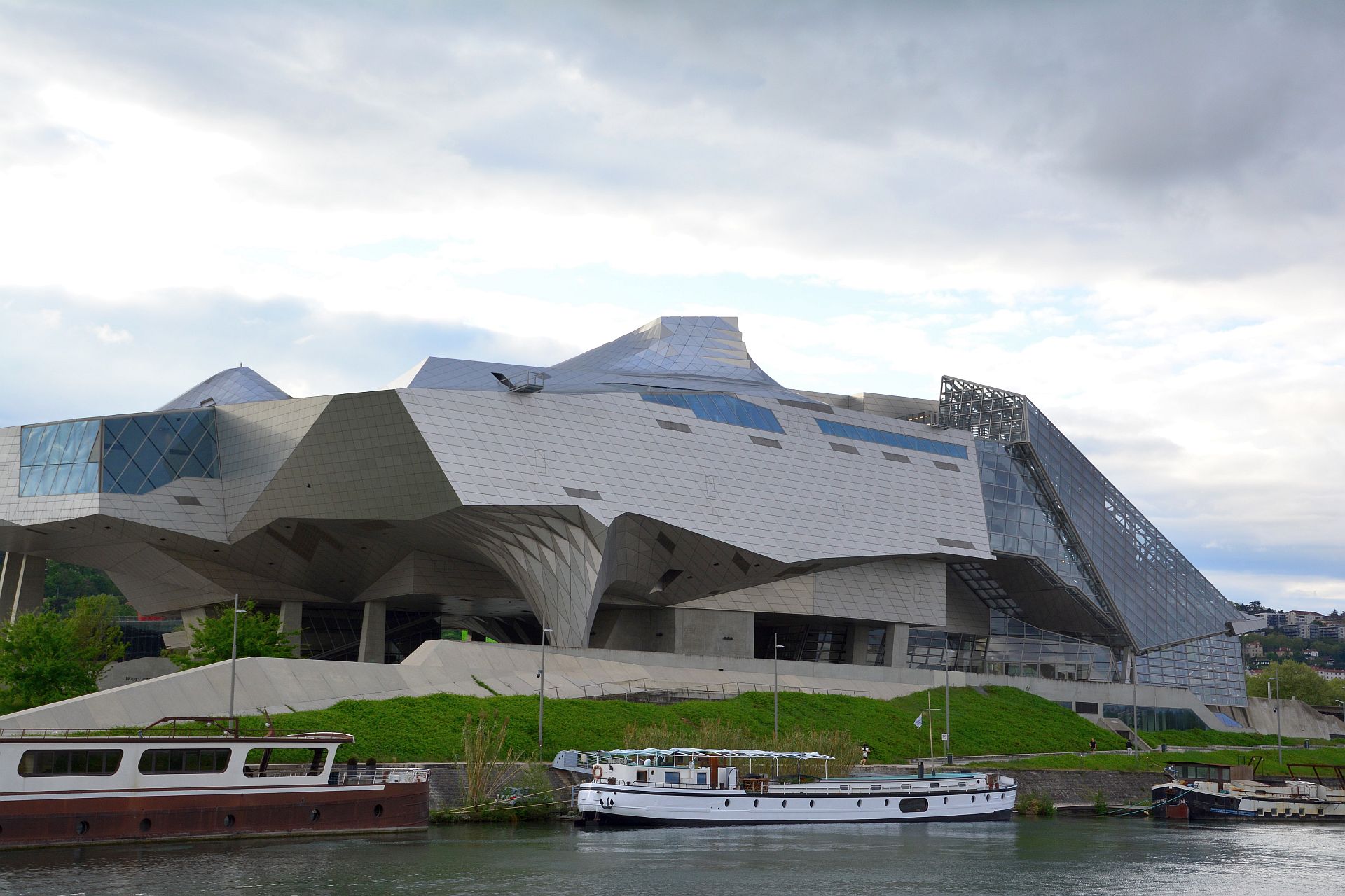 Futuristisches Gebäude am Zusammenfluss von Rhone und Saone
