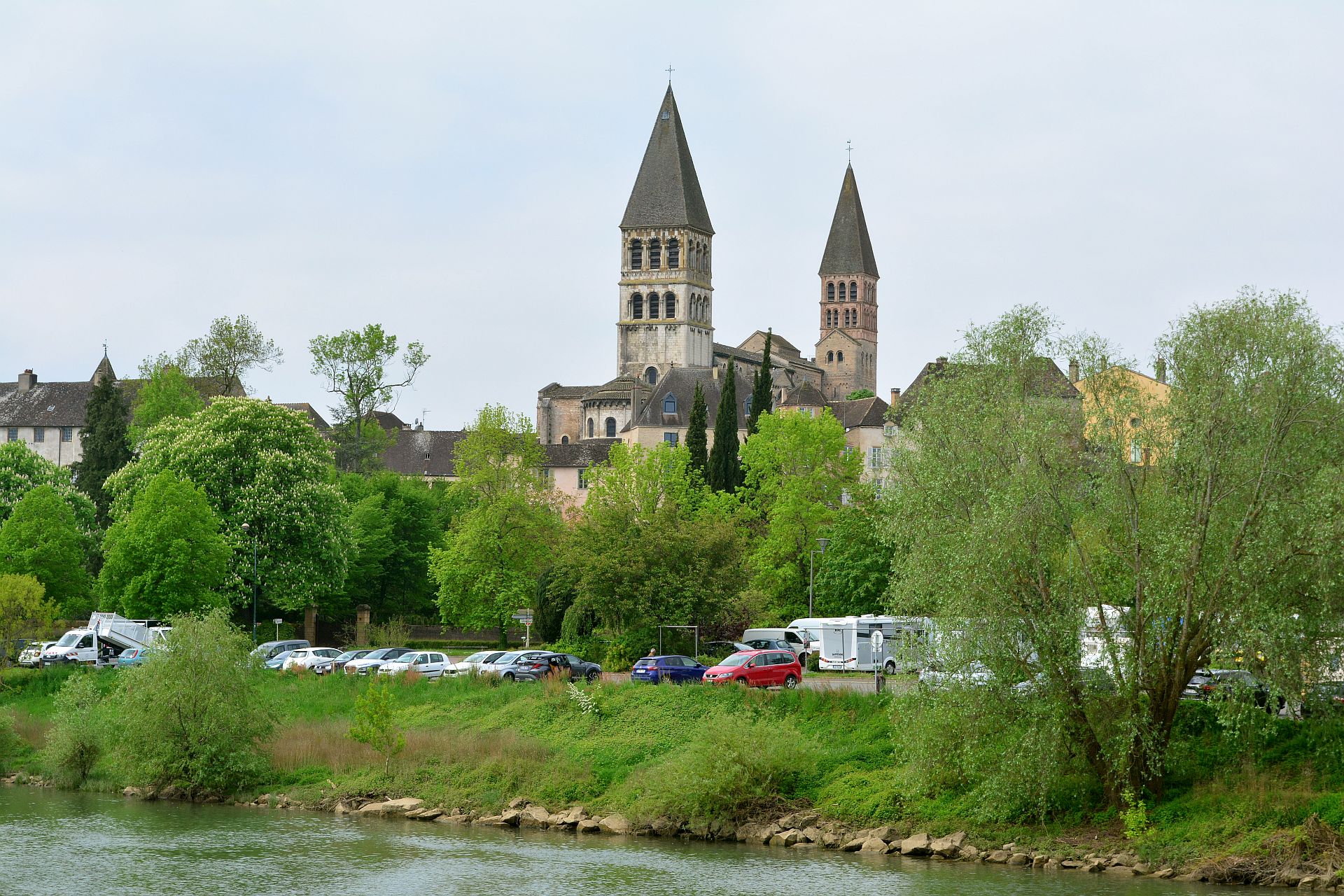 Kleinstadt an der Saône. Die Kirche der Benediktinerabtei gehört zu den bedeutendsten frühromanischen Sakralbauten Frankreichs.